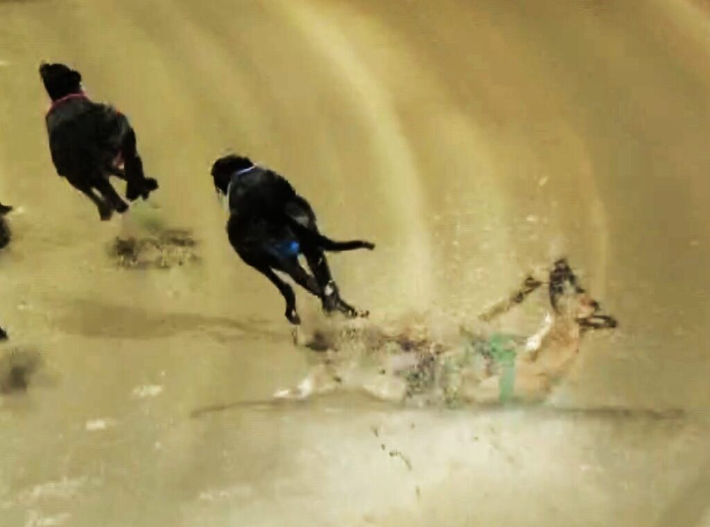 At least five dogs were injured on the night, two with major injuries (torn back muscle, torn back muscle and shoulder injury).