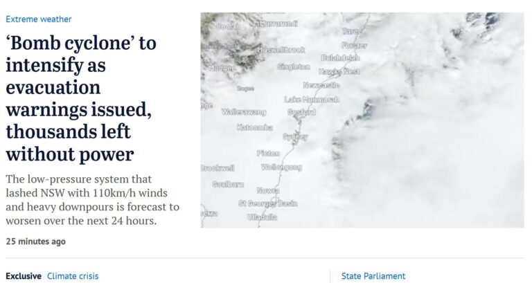 Human lives were also put at risk. With the immense storm battering the east coast of NSW, Fire and Rescue NSW urged people to stay at home. Many powerlines were down, “particularly in Central Coast”.