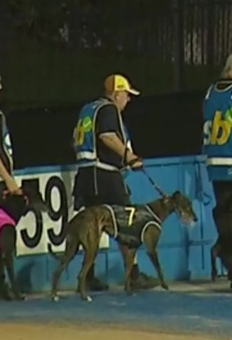 Footage shows Winckie Bale, a dark brindle greyhound, being paraded before the race then falling and twisting in agony with a fractured leg. You can also see her being removed from the track while the race continues.